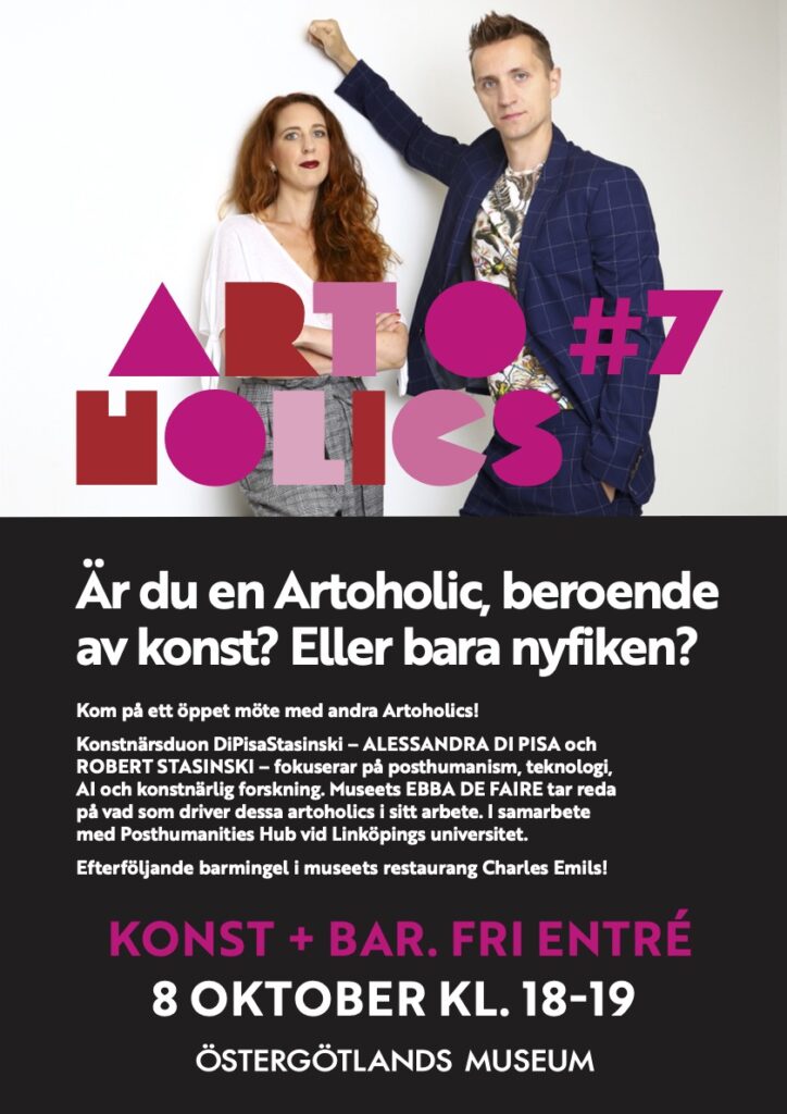 Warmly welcome to a joint event with The Posthumanities Hub and Östergötland Museum! Hub artists Alessandra Di Pisa and Robert Stasinski will talk about posthumanism, technology, AI and artistic research at Östergötland Museum in Linköping, on Wednesday 8th of October at 18-19 (CEST). Note: This event will be in Swedish!